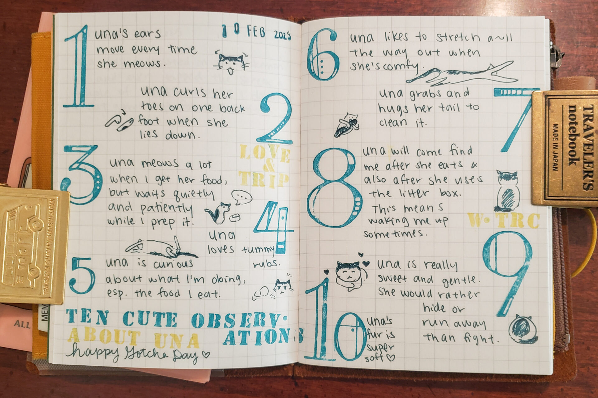 Earlier this year, TRAVELER’S COMPANY USA presented a contest that calls for users’ pages of TRAVELER’S notebook along the theme of love. We ask users to enter submissions that feature two facing pages of their TRAVELER’S notebook, with stories filled with love, including but not limited to personal growth, favorite things, encounters, or love of new things and experiences during the trip. We were so impressed with everyone’s submissions and blown away by the creative ways TRAVELER’S notebook fans express their love.